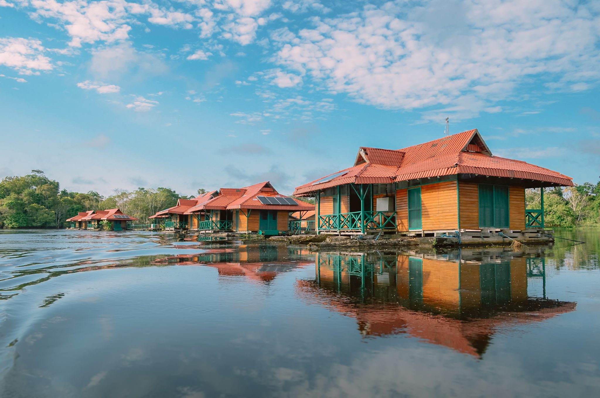 O Uacari Lodge é um hotel flutuante que se adapta perfeitamente aos períodos de seca e cheia do rio