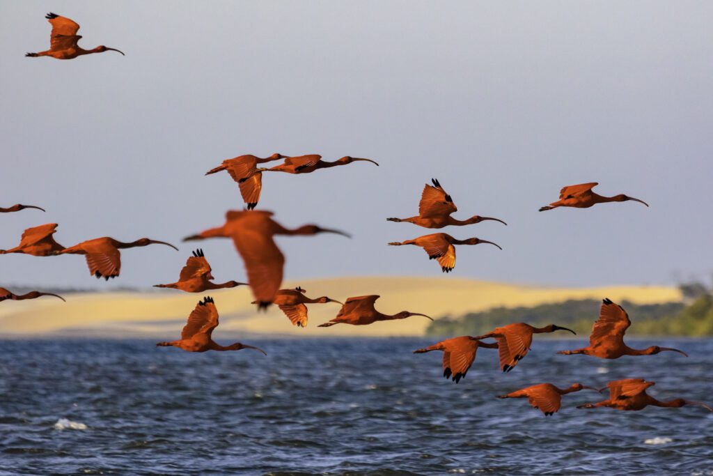 Um dos momentos mais emocionantes da Rota das Emoções é ver o dormitório dos Guarás no Delta do Parnaíba.