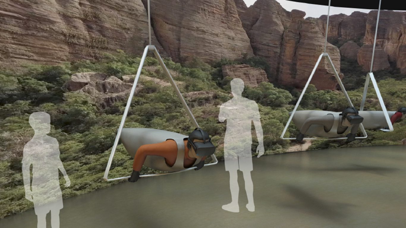 Imagens aéreas feitas com Drones conduzem o visitante por um passeio virtual pelos cânions, boqueirões, cavernas e pela flora do parque. A experiência pode ser feita com óculos de realidade virtual, simulando um voo em asa delta (imagem acima).