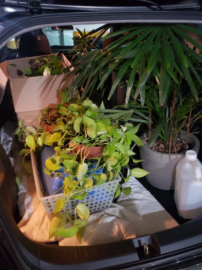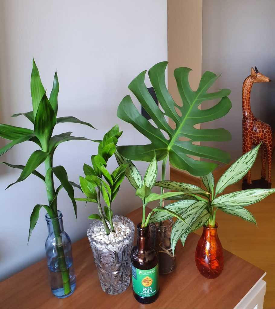 Assim que iniciou a quarentena, a Carol, que é da área de viagens de incentivo (viagens corporativas) da Ambiental, pegou as plantas que enfeitavam nosso escritório e resolveu abriga-las em sua própria casa já que o home office ia deixar nosso escritório vazio.